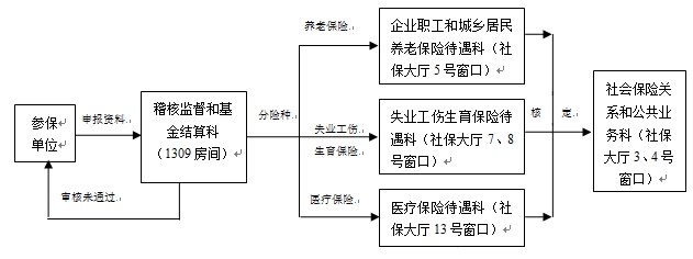 3.社保关系和公共业务科(社保大厅3、4号窗口,3号窗口核定单位管理码3、4开头的单位,4号窗口核定单位管理码1、2开头的单位)核定(未经稽核科及各待遇科室签字不予核定),核定结束后打印缴费通知书,并移交地税部门征收。